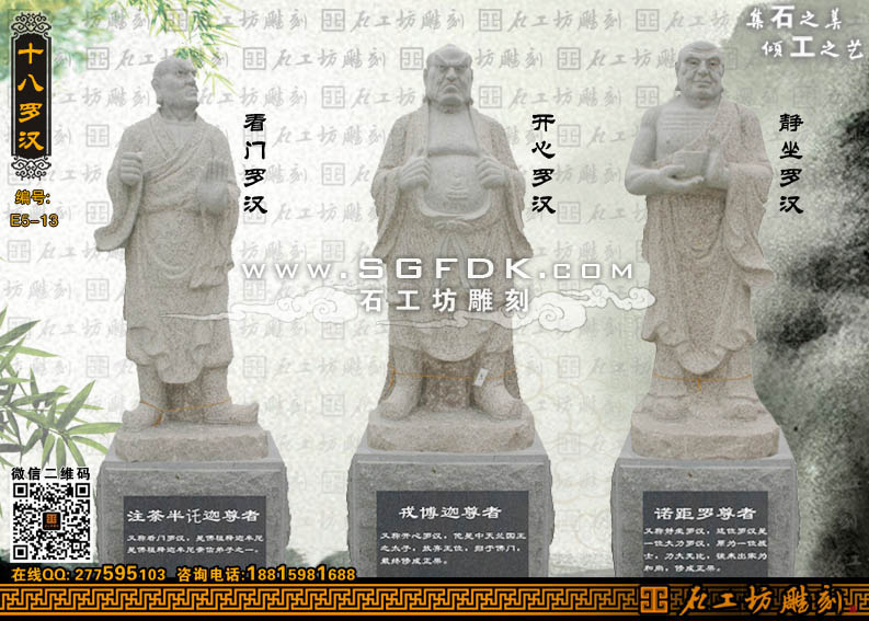 石雕羅漢雕塑-看門羅漢-開心羅漢-靜坐羅漢