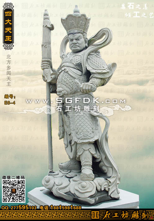 四大天王石雕北方多聞天王雕塑