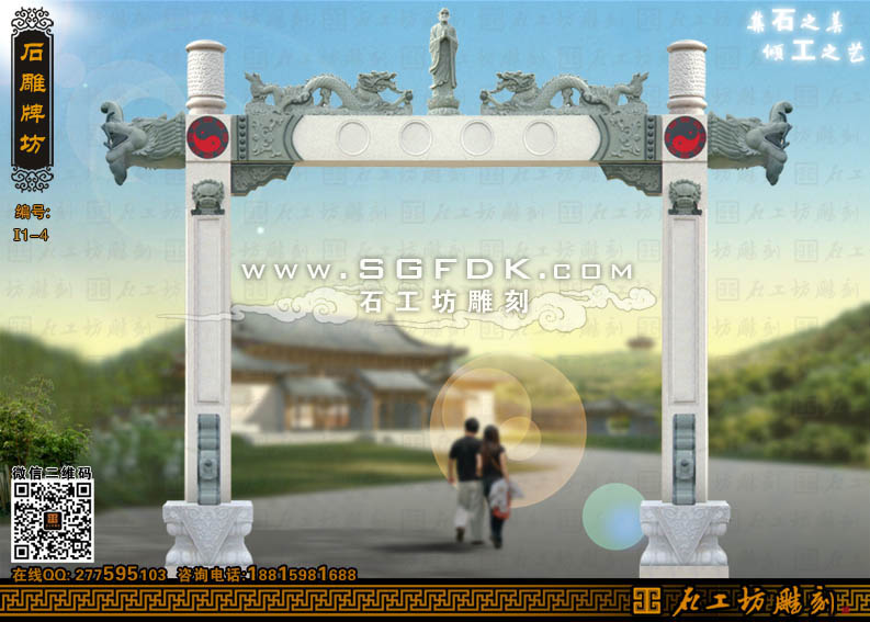 石工坊雕刻工廠其它石牌坊:單門石牌坊】 【立柱式牌坊】 【頂蓋式牌樓】 【大型石牌坊