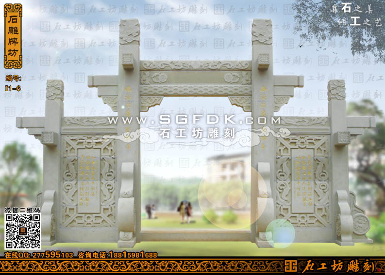 石工坊雕刻工廠其它石牌坊:【單門石牌坊】 【立柱式牌坊】 【頂蓋式牌樓】 【大型石牌坊】
