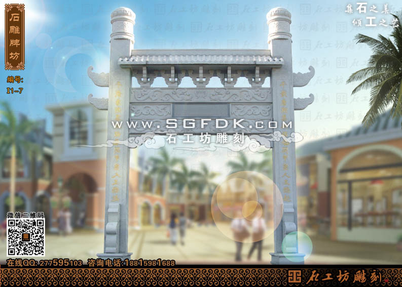 石工坊雕刻工廠其它石牌坊:單門石牌坊】 【立柱式牌坊】 【頂蓋式牌樓】 【大型石牌坊