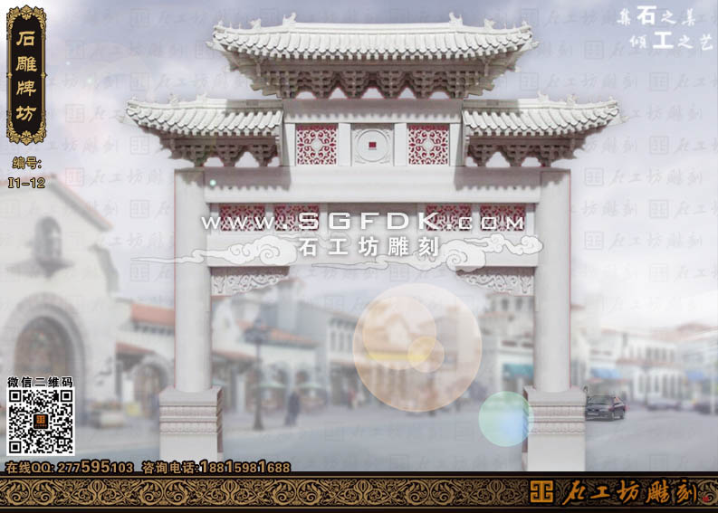 ·石工坊雕刻工廠其它石牌坊:【單門石牌坊】 【立柱式牌坊】 【頂蓋式牌樓】 【大型石牌坊】