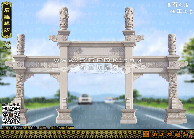 石工坊雕刻工廠其它石牌坊:【單門(mén)石牌坊】 【立柱式牌坊】 【頂蓋式牌樓】 【大型石牌坊】
