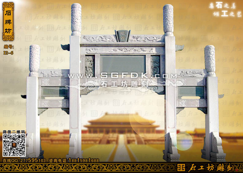 石工坊雕刻工廠其它石牌坊:單門石牌坊】 【立柱式牌坊】 【頂蓋式牌樓】 【大型石牌坊