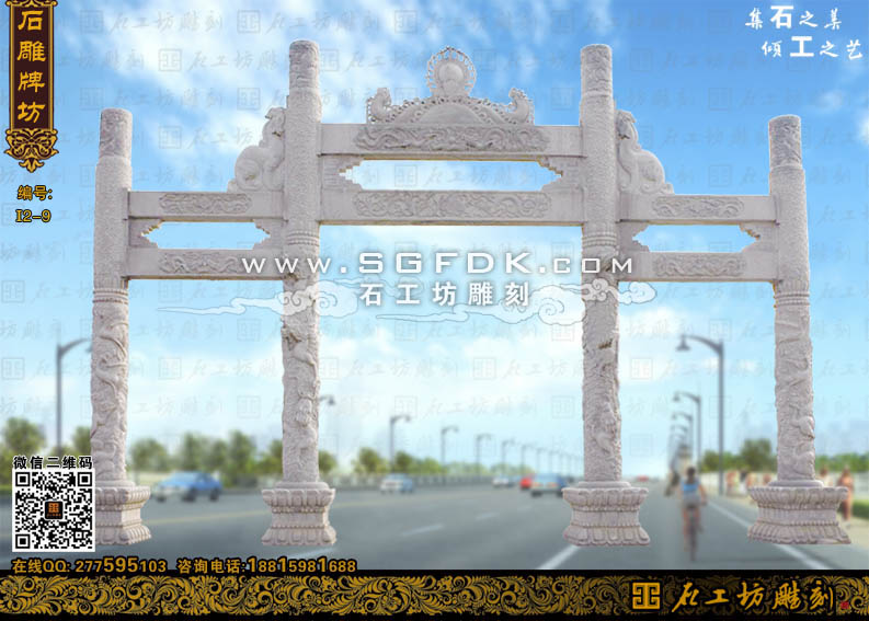 石工坊雕刻工廠其它石牌坊:單門石牌坊】 【立柱式牌坊】 【頂蓋式牌樓】 【大型石牌坊