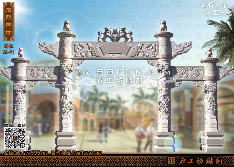 石工坊雕刻工廠其它石牌坊:【單門石牌坊】 【立柱式牌坊】 【頂蓋式牌樓】 【大型石牌坊】