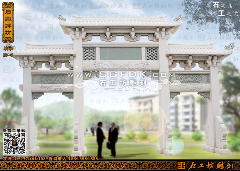 石工坊雕刻工廠其它石牌坊:單門石牌坊】 【立柱式牌坊】 【頂蓋式牌樓】 【大型石牌坊