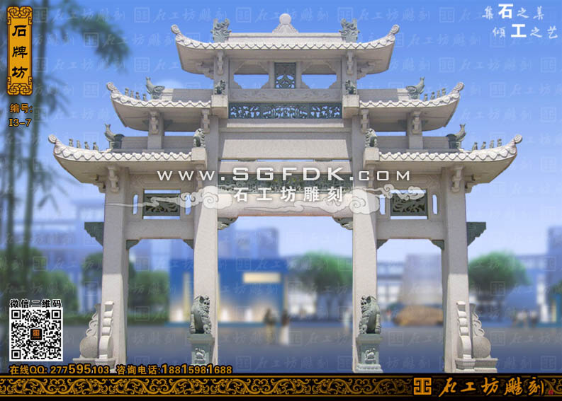石工坊雕刻工廠其它石牌坊:【單門石牌坊】 【立柱式牌坊】 【頂蓋式牌樓】 【大型石牌坊】