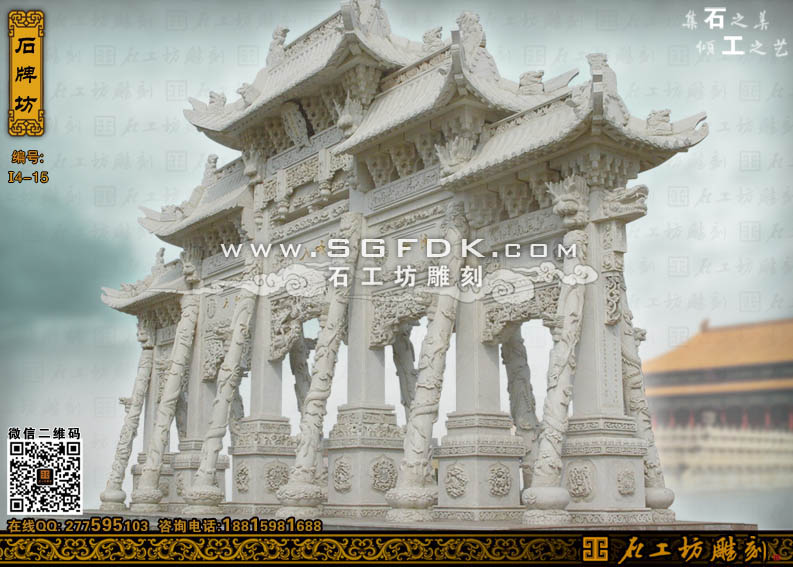 石工坊雕刻工廠其它石牌坊:單門石牌坊】 【立柱式牌坊】 【頂蓋式牌樓】 【大型石牌坊