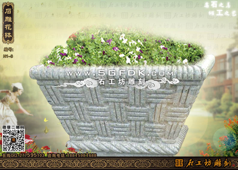 石工坊雕刻工廠其它石花缽石花盆:【