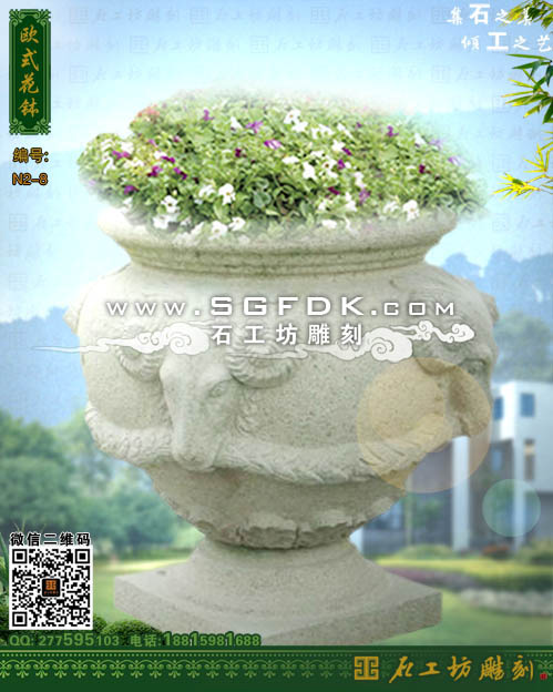 石工坊雕刻工廠其它石花缽石花盆:【