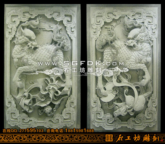 石雕麒麟浮雕堵雕刻