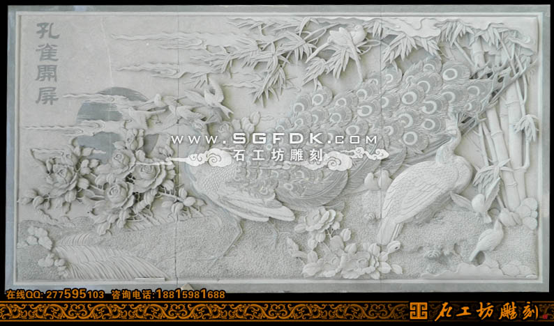 花鳥圖案孔雀開屏浮雕