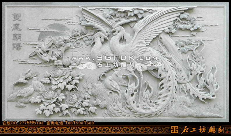 花鳥圖案雙鳳朝陽浮雕