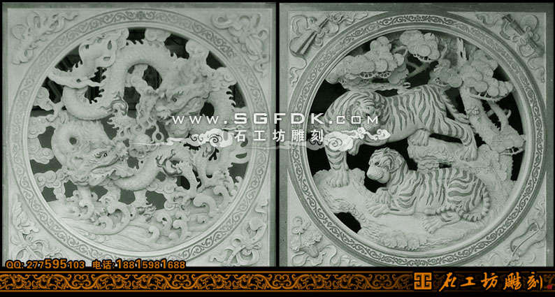 石雕窗透雕雙龍雙虎