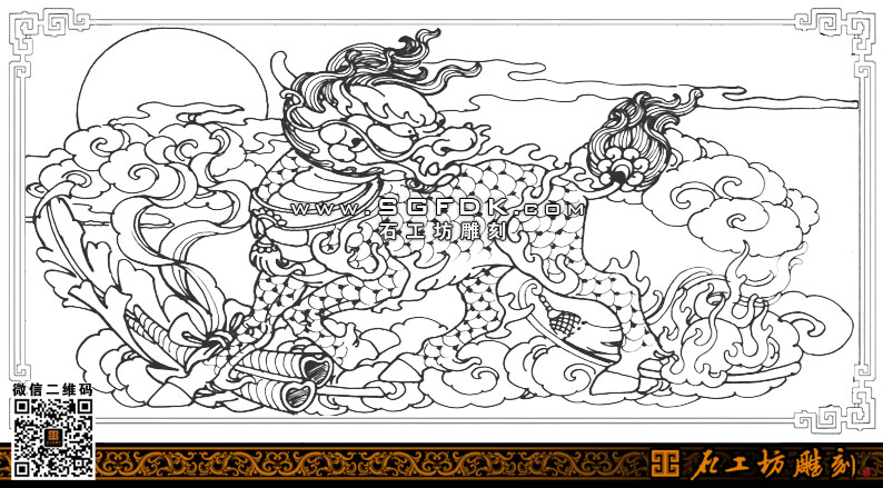 石雕設(shè)計圖庫-麒麟呈祥圖