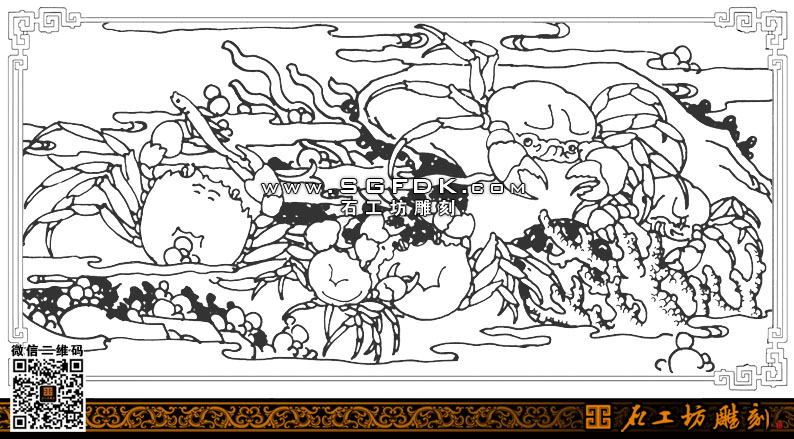 石雕設(shè)計(jì)圖庫-螃蟹水族圖