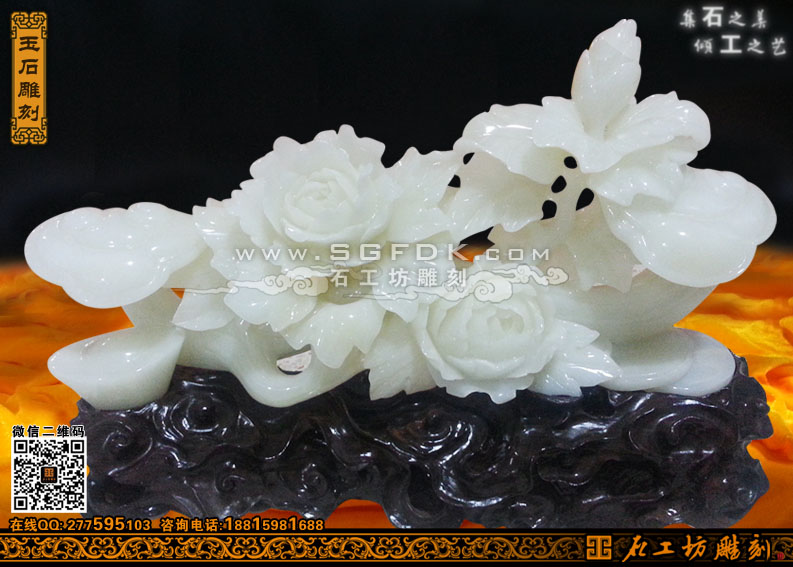 玉石如意雕刻花開富貴