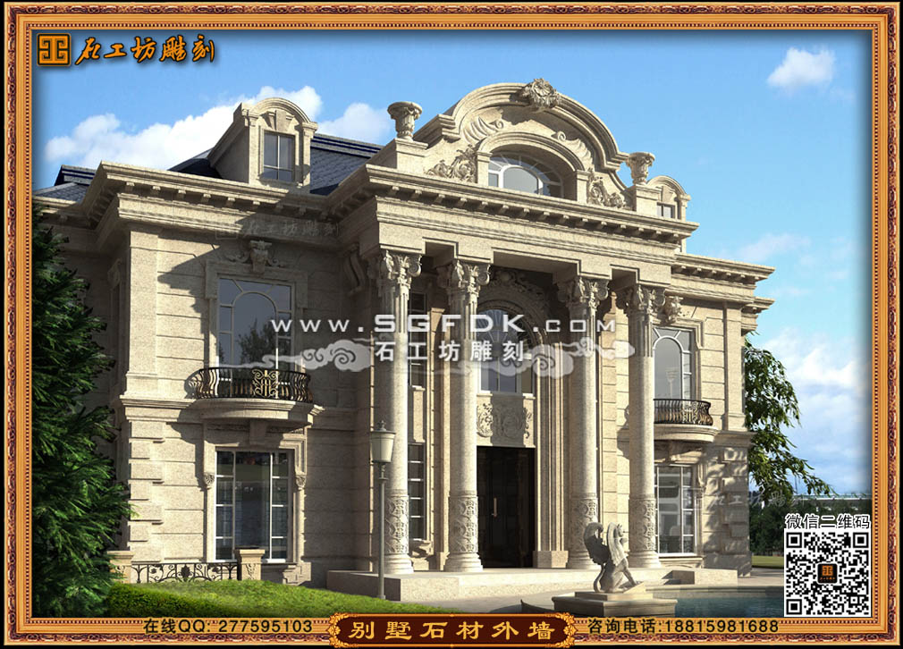 【別墅效果圖設(shè)計】 【石材外墻施工案例】【歐式大門雕刻】 【歐式浮雕堵】 【石雕羅馬柱】