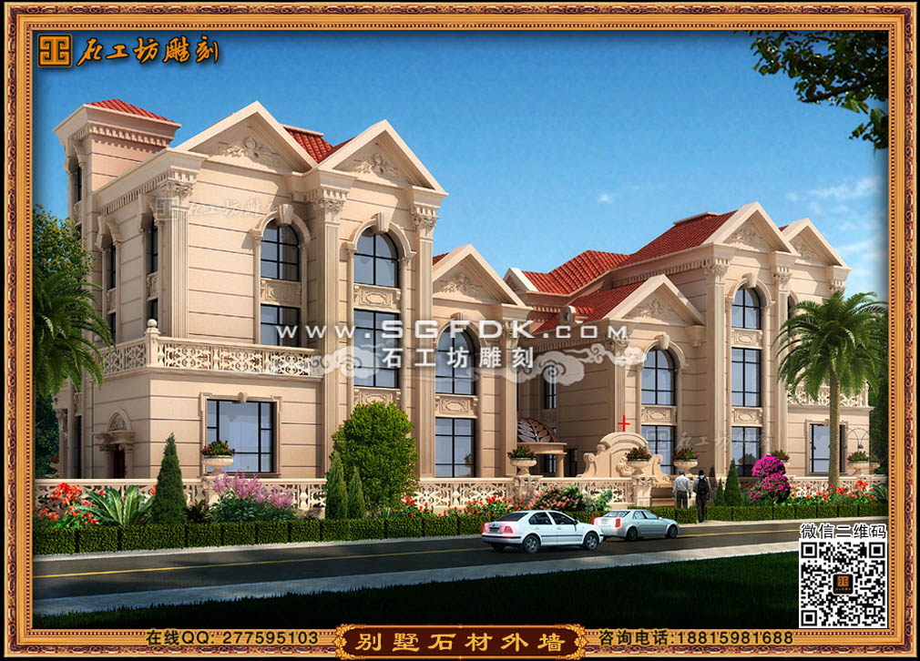 【別墅效果圖設計】 【石材外墻施工案例】【歐式大門雕刻】 【歐式浮雕堵】 【石雕羅馬柱】