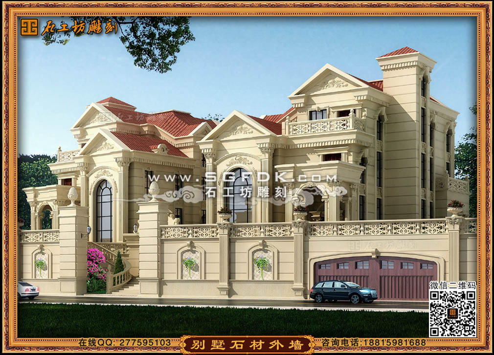 【別墅效果圖設(shè)計(jì)】 【石材外墻施工案例】【歐式大門雕刻】 【歐式浮雕堵】 【石雕羅馬柱】