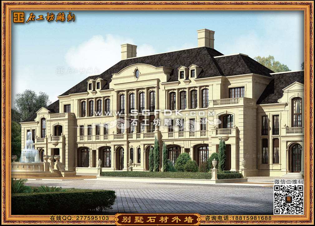 【別墅效果圖設(shè)計(jì)】 【石材外墻施工案例】【歐式大門雕刻】 【歐式浮雕堵】 【石雕羅馬柱】