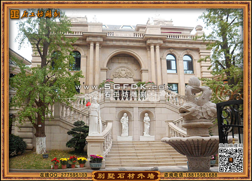 別墅效果圖設(shè)計(jì)】 【石材外墻施工案例】【歐式大門雕刻】 【歐式浮雕堵】 【石雕羅馬柱