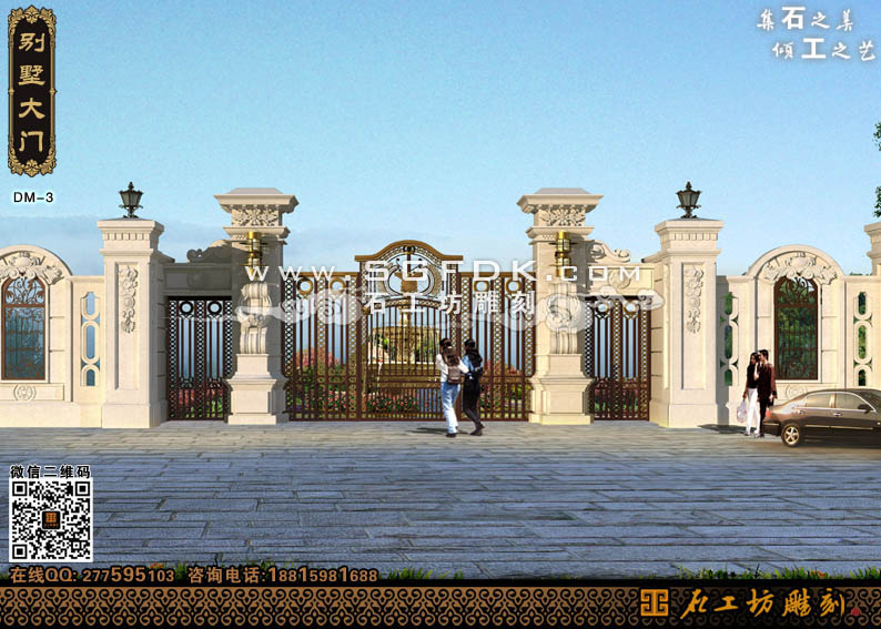【別墅效果圖設(shè)計(jì)】 【石材外墻施工案例】【歐式大門雕刻】 【歐式浮雕堵】 【石雕羅馬柱】