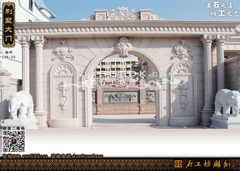 別墅效果圖設(shè)計】 【石材外墻施工案例】【歐式大門雕刻】 【歐式浮雕堵】 【石雕羅馬柱
