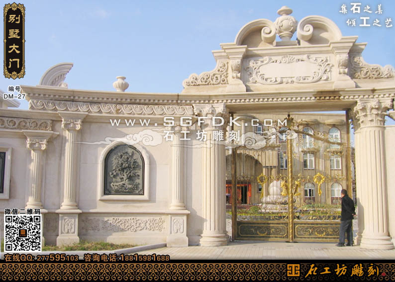 【別墅效果圖設(shè)計(jì)】 【石材外墻施工案例】【歐式大門雕刻】 【歐式浮雕堵】 【石雕羅馬柱】