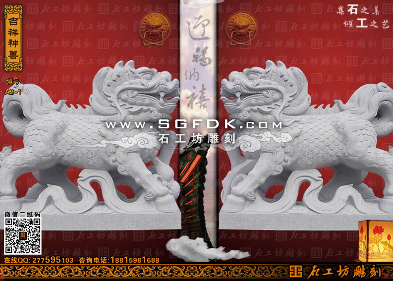麒麟是中國古代流傳已久的神獸動物。它的外形很奇特,和龍一樣,他身上集合了很多動物的特征。頭像鹿,有長獨(dú)角,全身有鱗甲,尾像牛尾。自麒麟亦作“騏麟”,簡稱“麟”,為四靈之首,麟鳳龍龜。后由于封建皇帝對龍鳳的褒揚(yáng),麒麟被排擠到民間。成為民間祥瑞的獨(dú)特代表. 麒麟文化是中國的傳統(tǒng)民俗文化。盼麒麟送子,就是中國古代的生育崇拜之一。我國古代以麒麟為龍子。盼望生得“麒麟兒”。“麟兒”就是民間的祥瑞與美好期望。那些有幸得到中國歷代官方命名為“麟州”的中國地方,古來必然該是,曾產(chǎn)生過中華民族炎黃,華夏級別的帝王的英雄土地,自古以來,人們也常用麒麟來比喻才能杰出的人。(資料來源:石工坊雕刻)