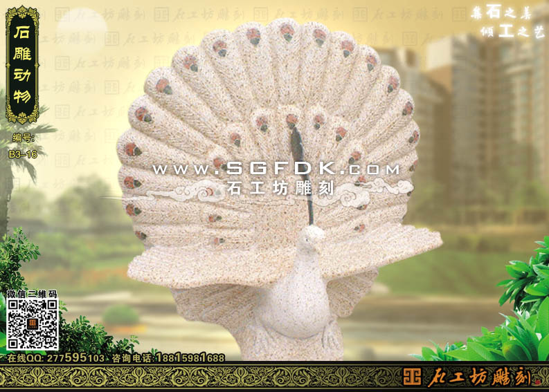 公園雕塑石雕孔雀開屏
