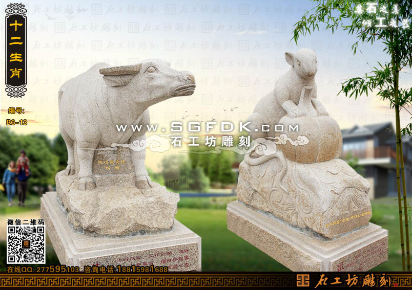 生肖雕塑石雕牛石雕鼠