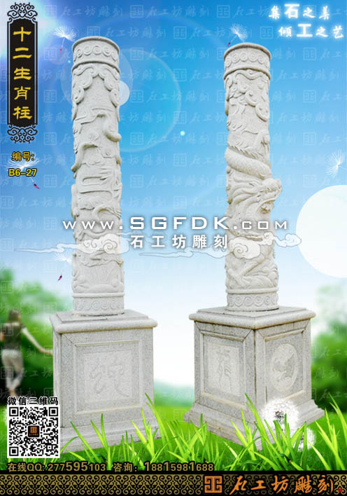 石雕柱生肖柱龍柱蛇柱