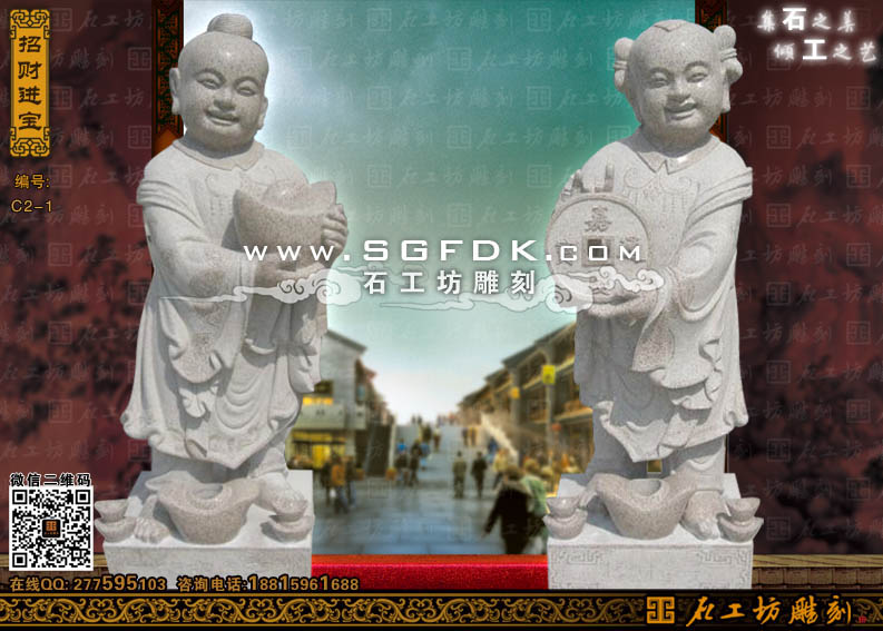 石雕童男童女招財進寶