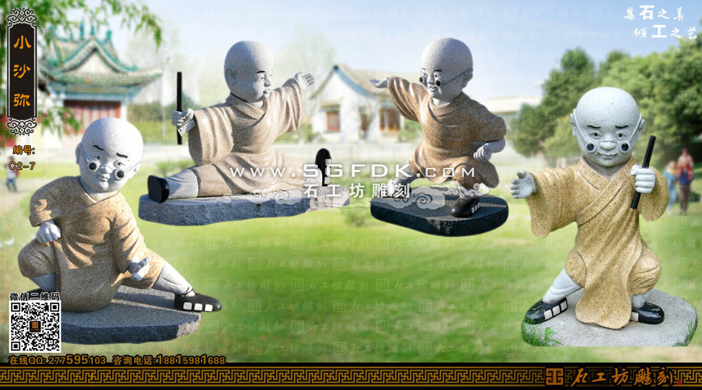 園林石雕小和尚練武術(shù)小沙彌
