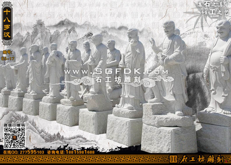 佛像雕塑十八羅漢石雕站像雕刻