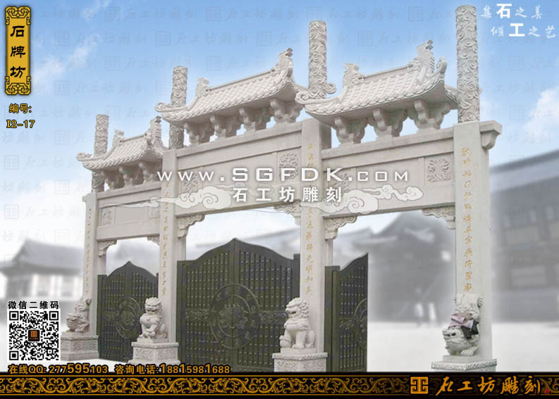 石工坊雕刻工廠其它石牌坊:【單門石牌坊】 【立柱式牌坊】 【頂蓋式牌樓】 【大型石牌坊】
