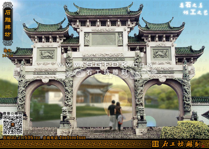 石工坊雕刻工廠其它石牌坊:【單門石牌坊】 【立柱式牌坊】 【頂蓋式牌樓】 【大型石牌坊】