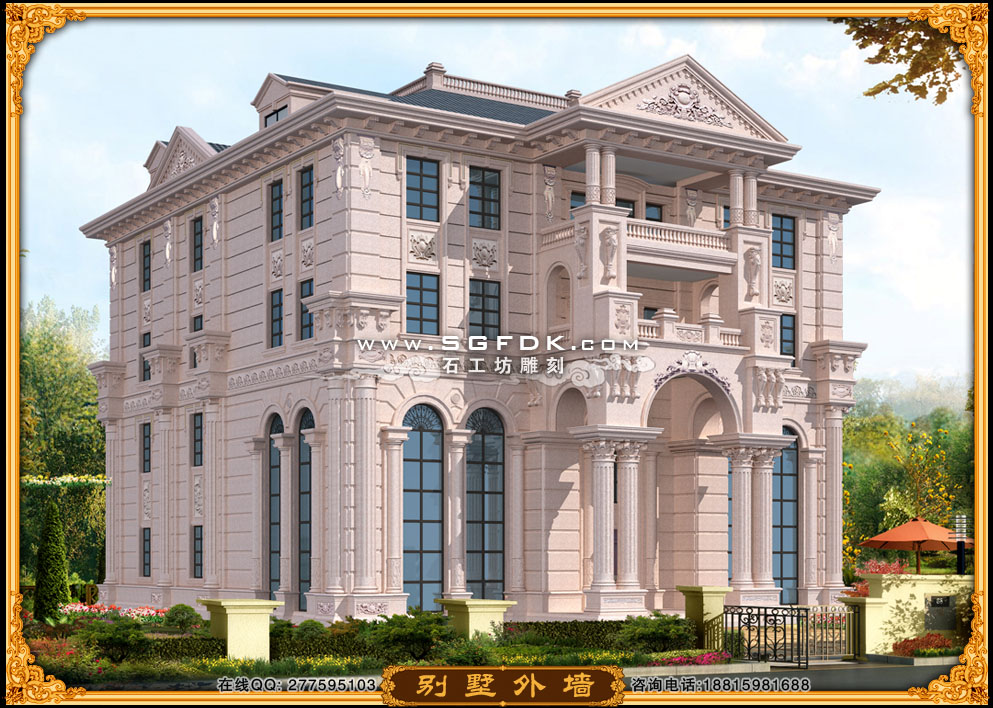 【別墅效果圖設(shè)計(jì)】 【石材外墻施工案例】【歐式大門(mén)雕刻】 【歐式浮雕堵】 【石雕羅馬柱】