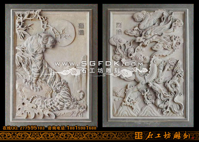 虎嘯龍呤浮雕堵圖案