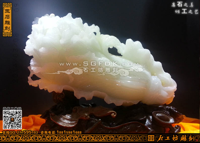 阿富汗玉白菜雕刻擺件