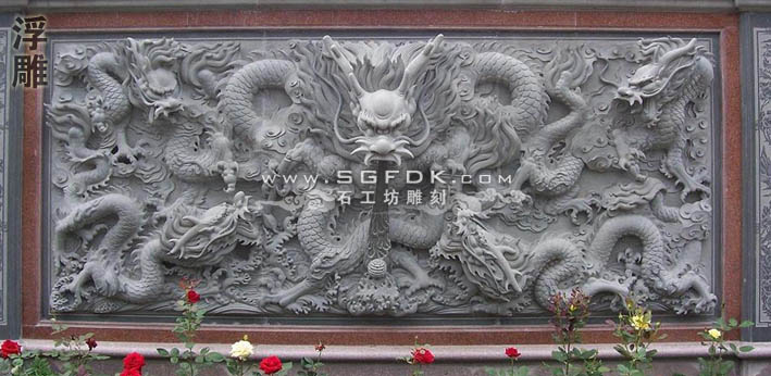 1、浮雕:即在石料表面雕刻有立體感的圖像,是半立體型的雕刻品。因圖像浮凸于石面而稱浮雕。根據(jù)石面脫石深淺程度的不同分,又分為淺浮雕及高浮雕。淺浮雕是單層次雕像,內(nèi)容比較單一,沒(méi)有鏤空透該。高浮雕是多層次造像,內(nèi)容都較繁復(fù),多采取透雕手法鏤空,更能引人入勝。浮雕多用于建筑物的墻壁裝飾,還有寺廟的龍柱、抱鼓等。北京故宮的御道就是浮雕。