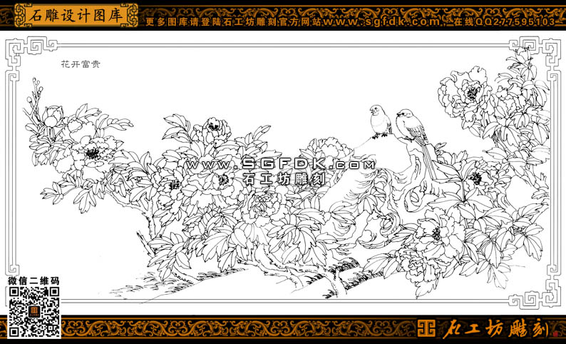 花鳥白描圖花開富貴