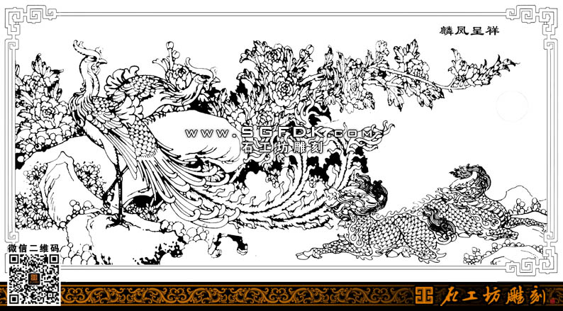 石雕圖紙?jiān)O(shè)計(jì)麟鳳呈祥白描圖