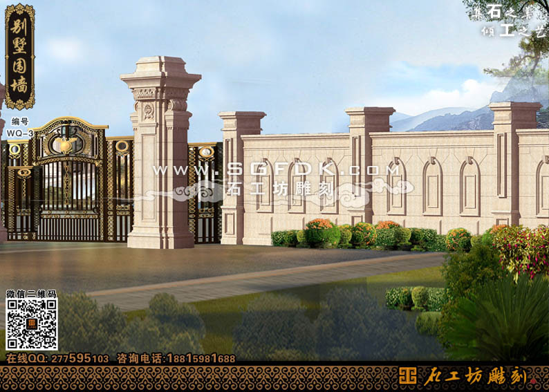 【別墅效果圖設(shè)計(jì)】 【石材外墻施工案例】【歐式大門雕刻】 【歐式浮雕堵】 【石雕羅馬柱】
