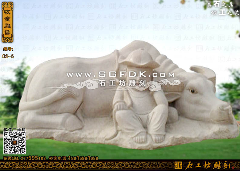 園林石雕放牛娃雕塑