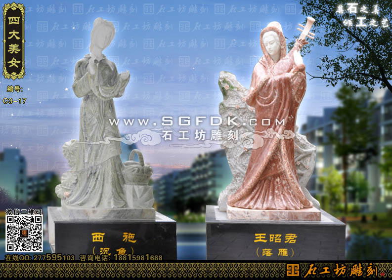 美女石雕沉魚落雁雕塑